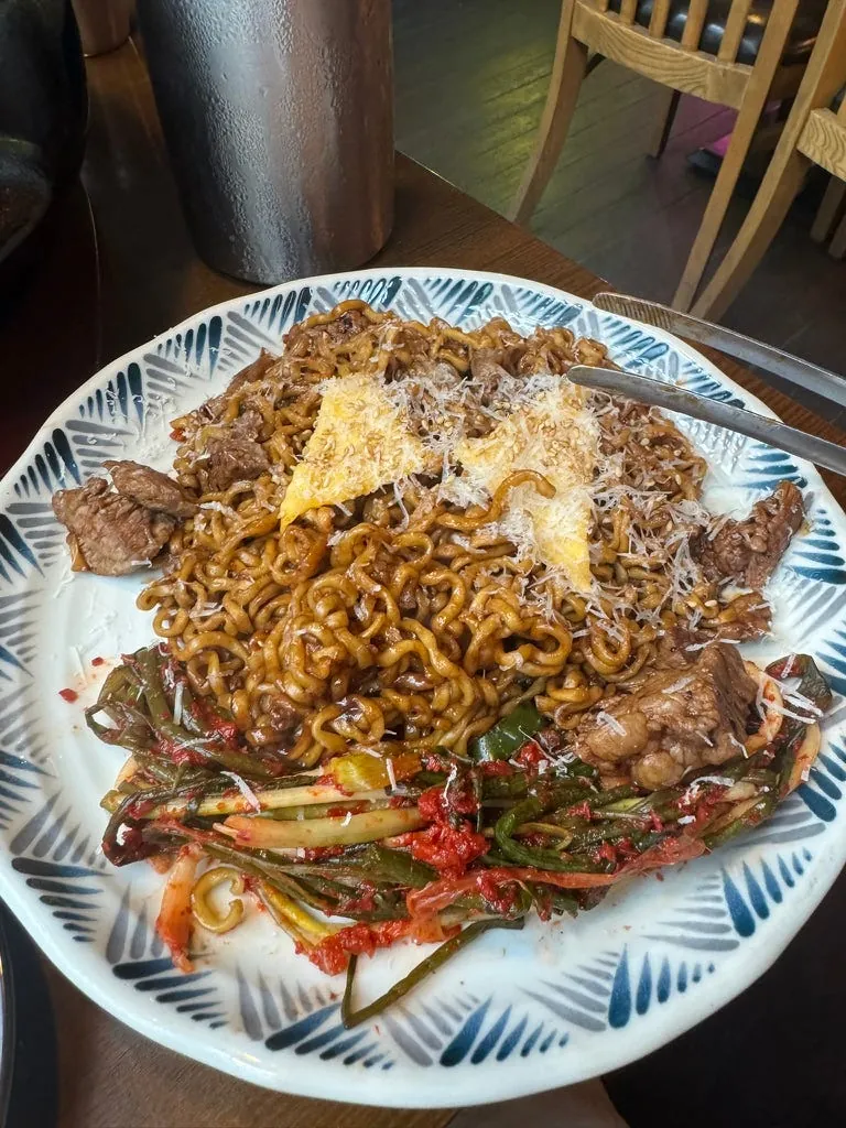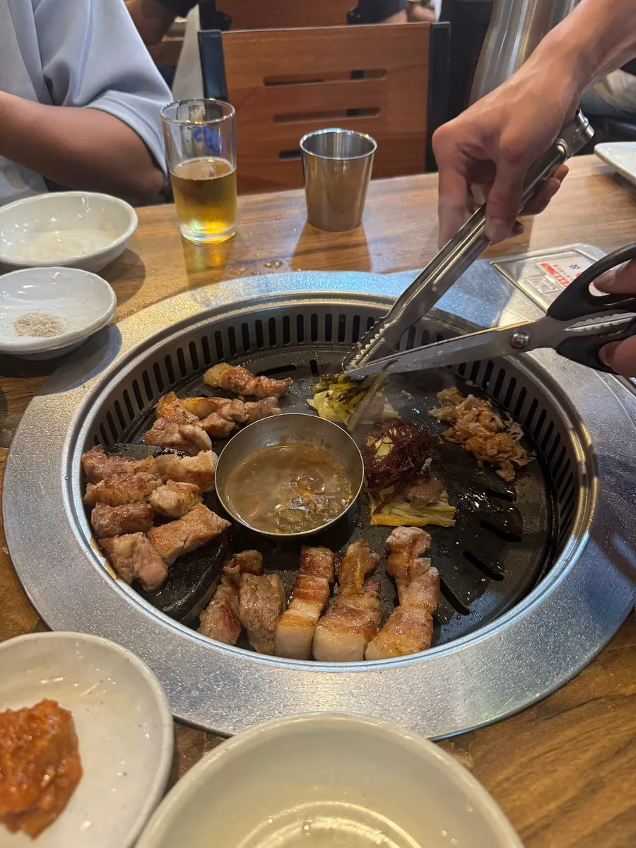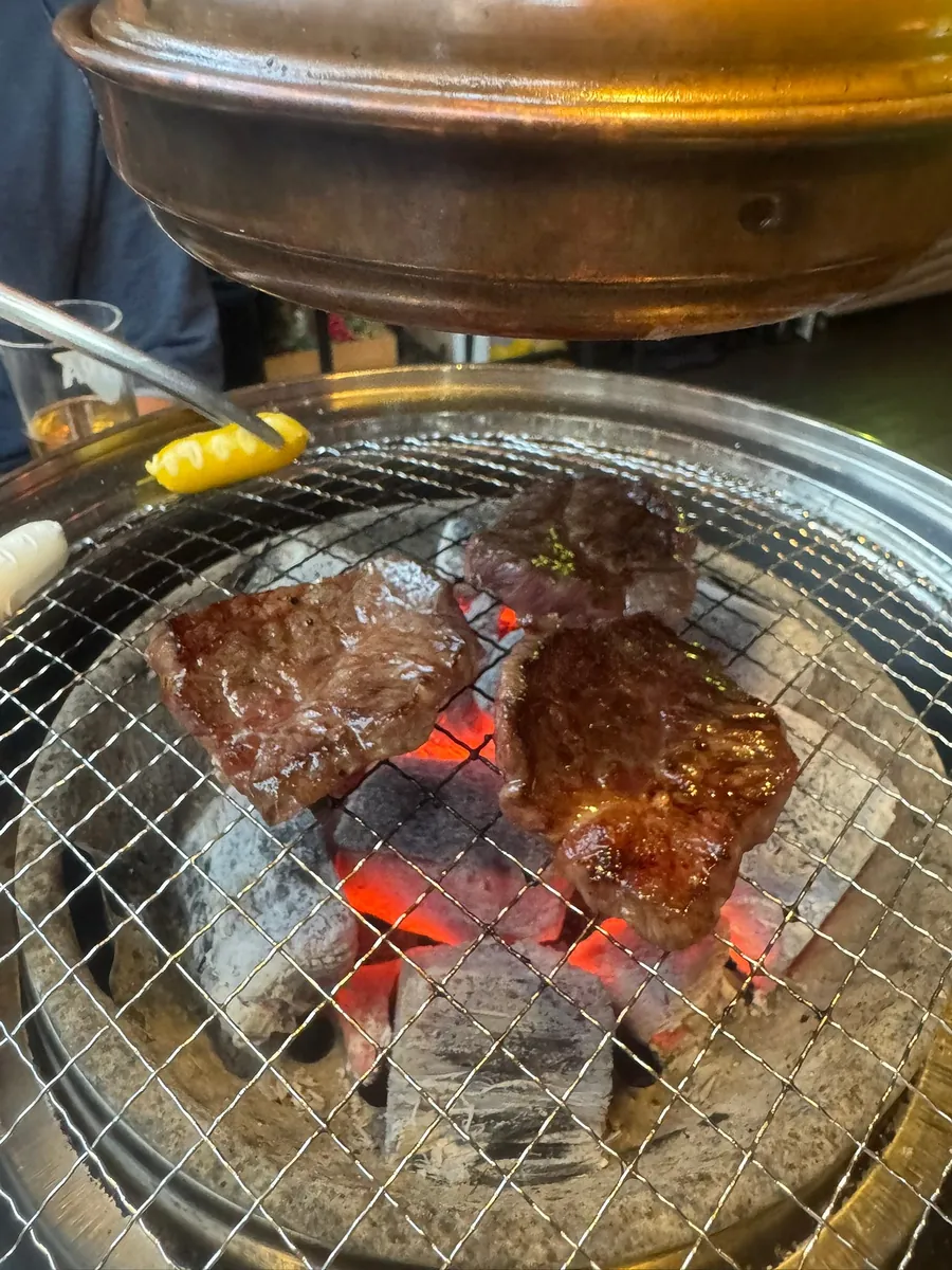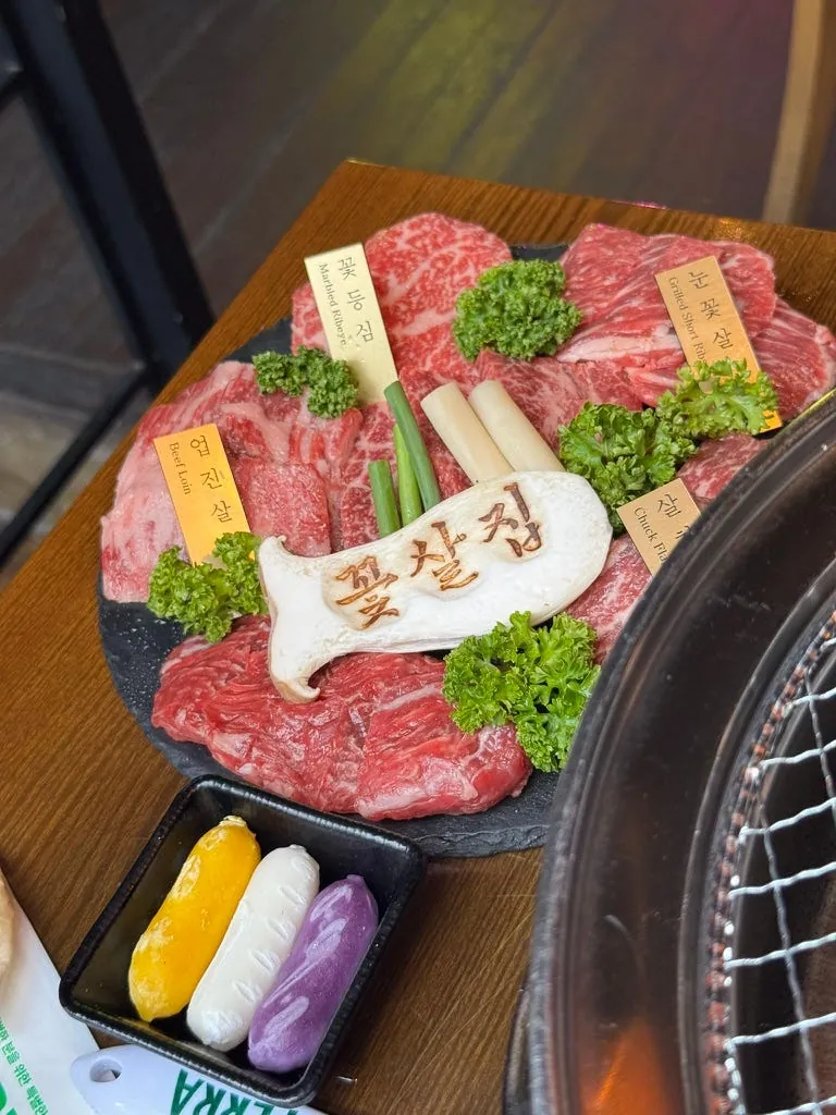 点了一份韩牛 Set+炸酱面+Cass 啤酒,韩牛嫩但没什么牛味,我觉得普普;加上 价格实刷 NT$2,458 C/P 值不太高 ,不如前几天吃的喉咙锅盖烤肉。