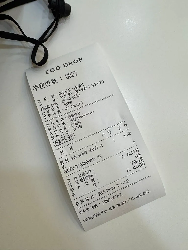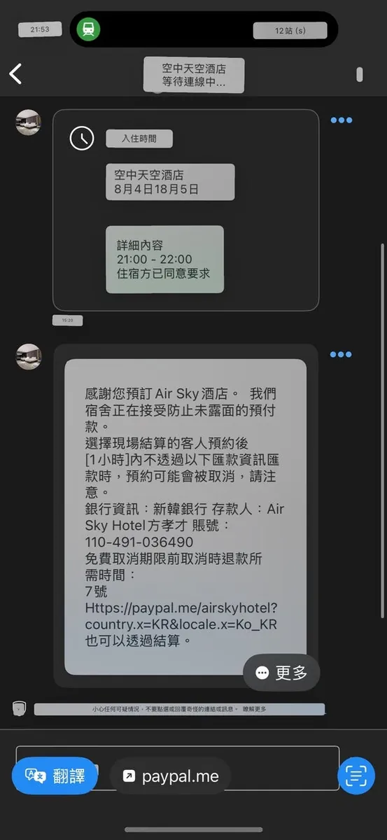 被收了 $6,000 + $7,000 韩元 (约 NT$280)。