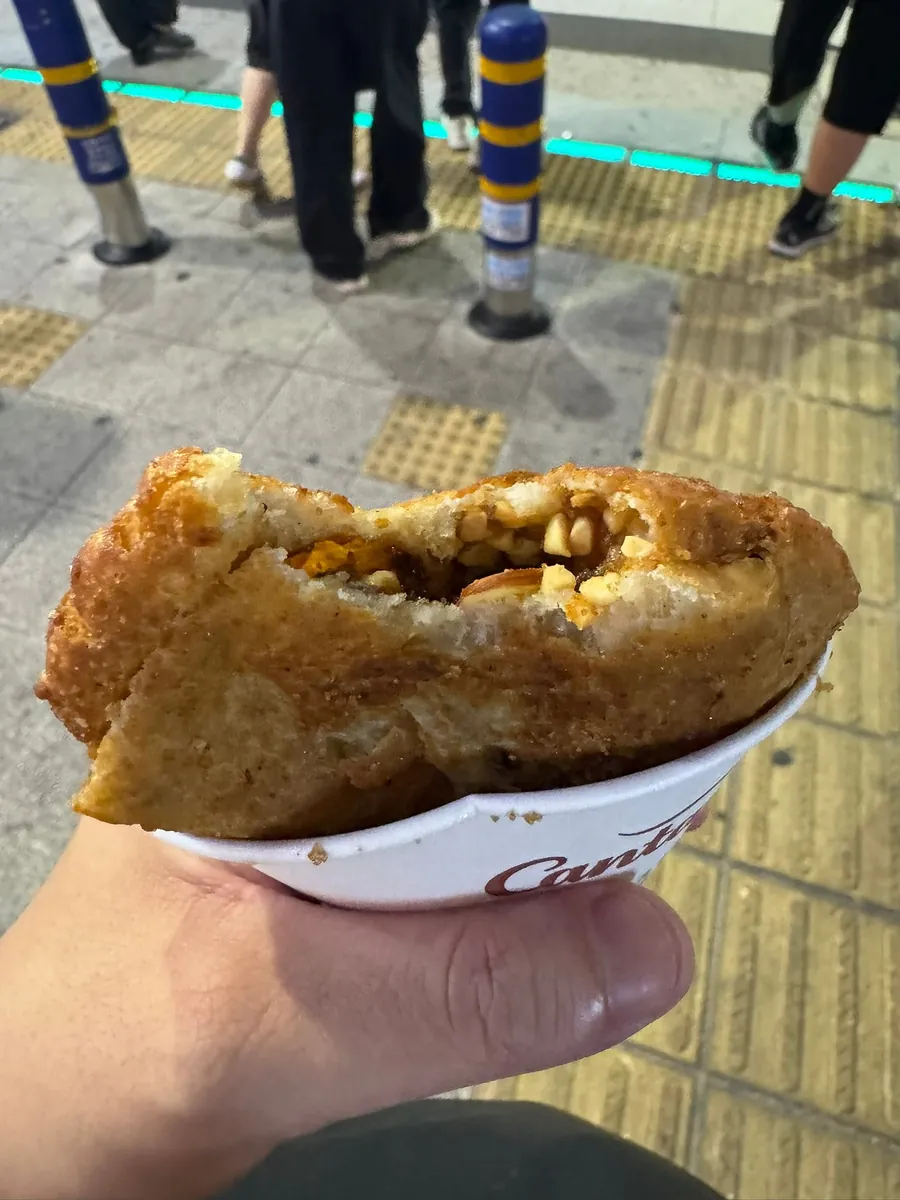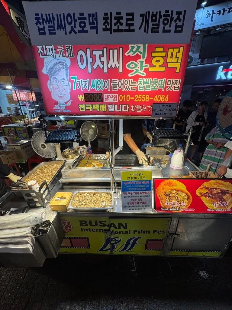回饭店前买了 BIFF 广场蛮多人排的 种子糖饼 ,我觉得很油很甜不怎么样。