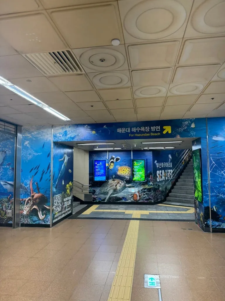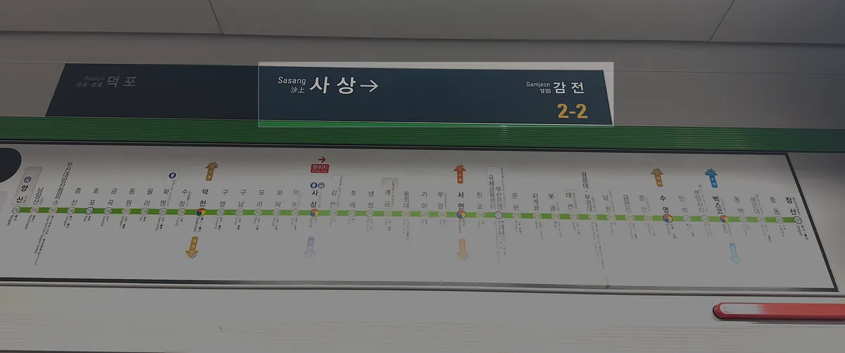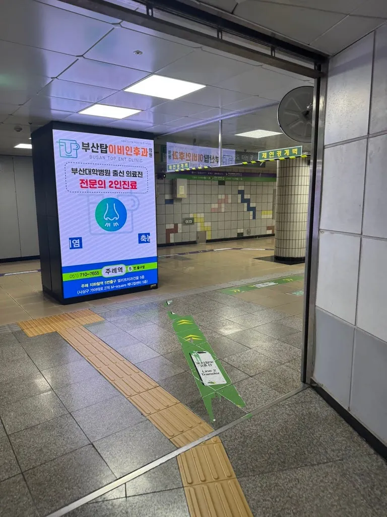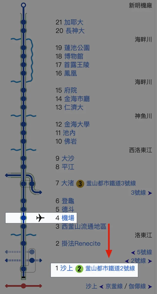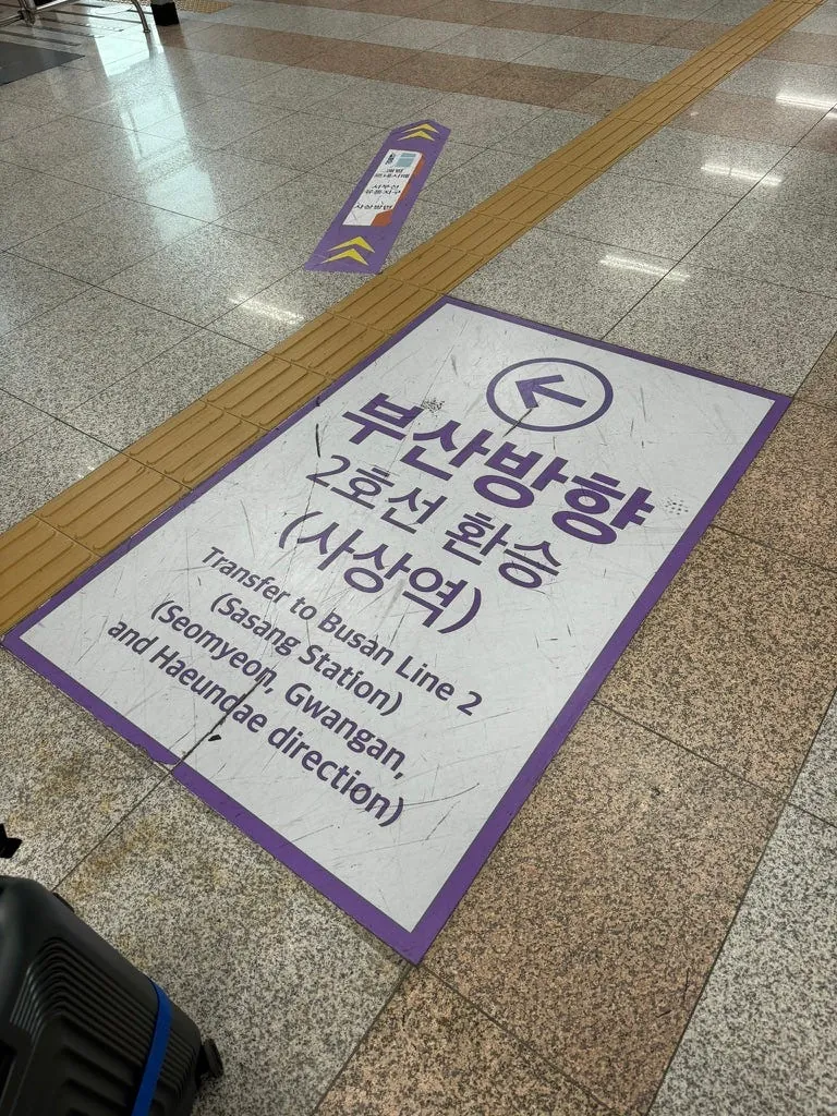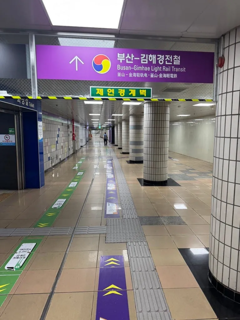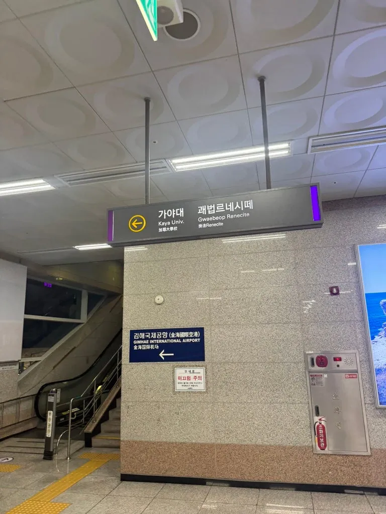 饭店在机场的上一站 — 西釜山流通地区站,对街有 CU/GS25 超商。