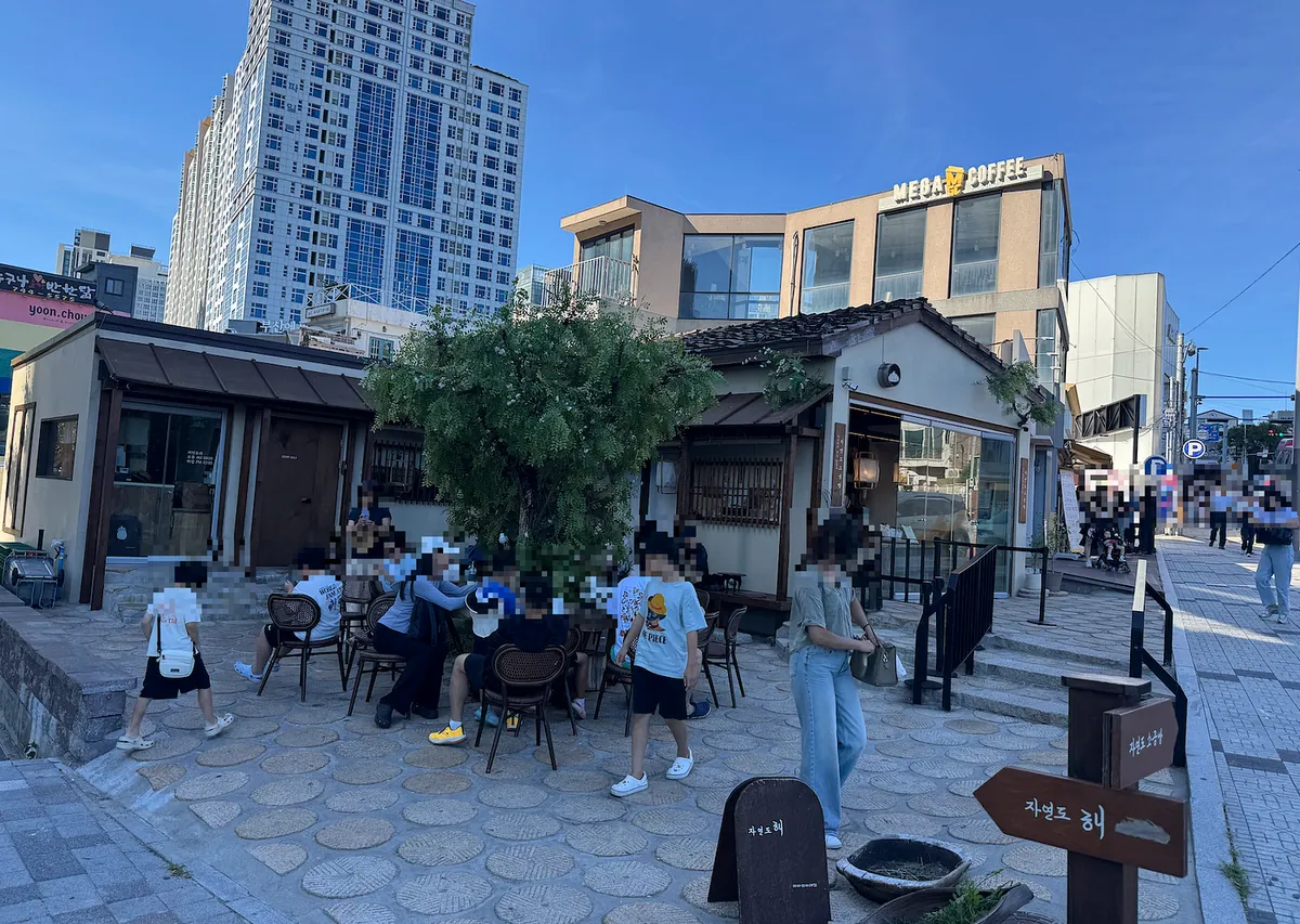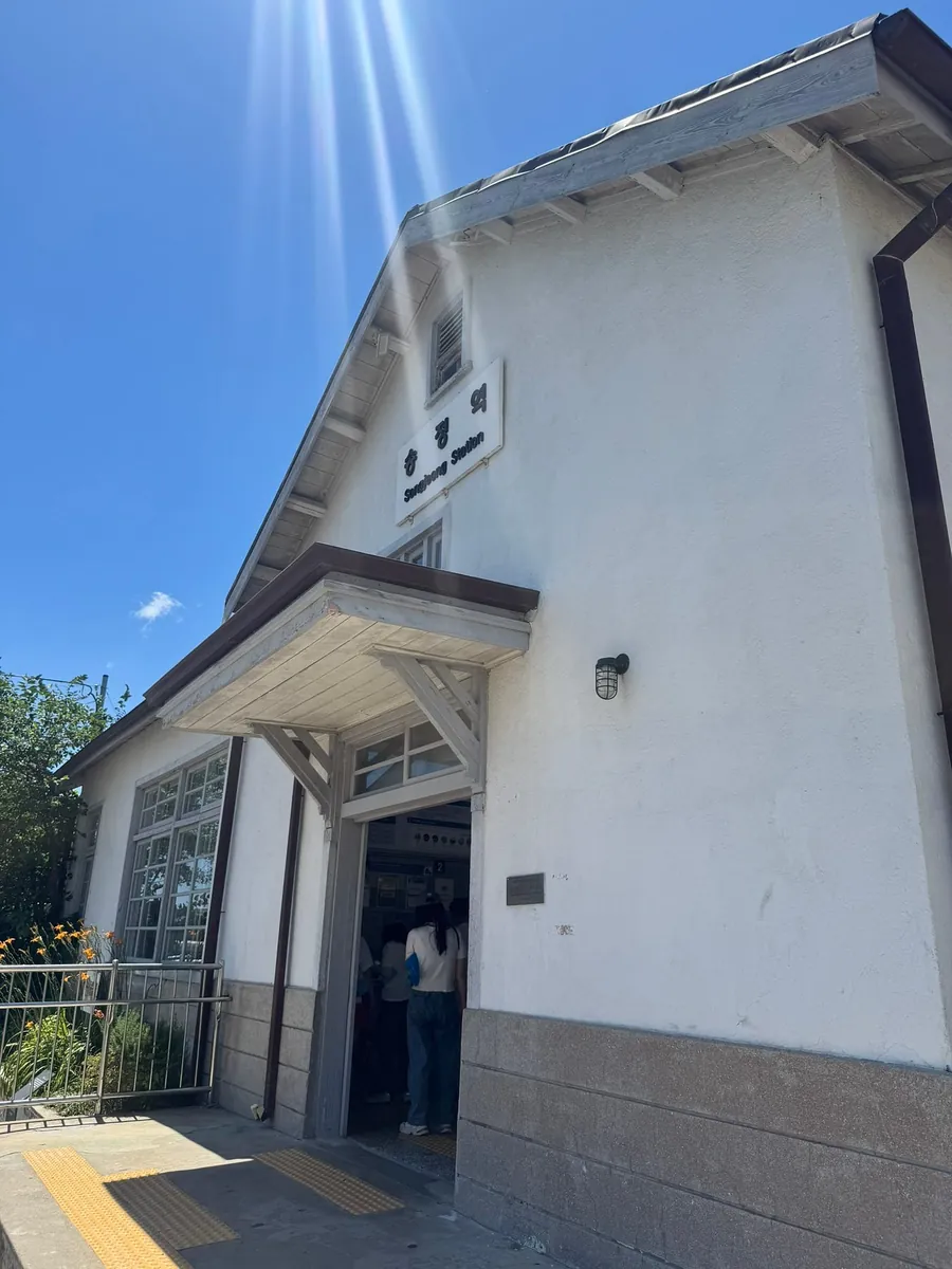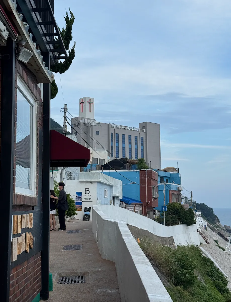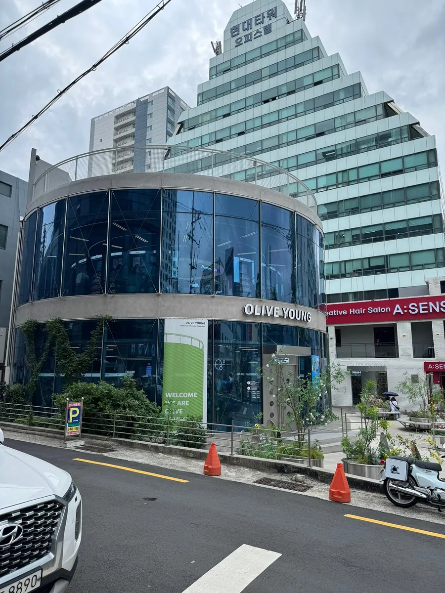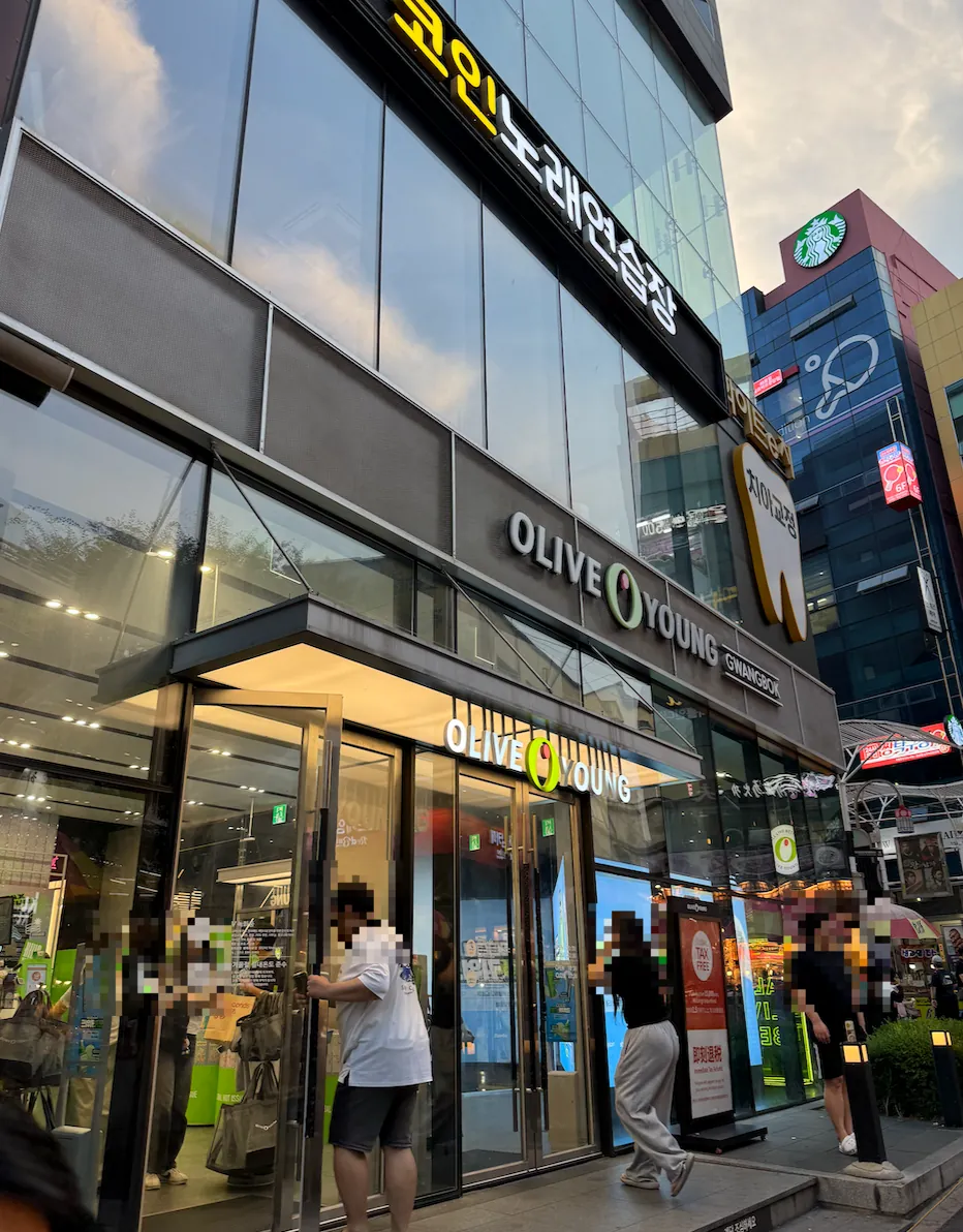 田浦站出来就能看到往田浦咖啡街的指示牌,出来这边有一家独栋的 Olive Young。