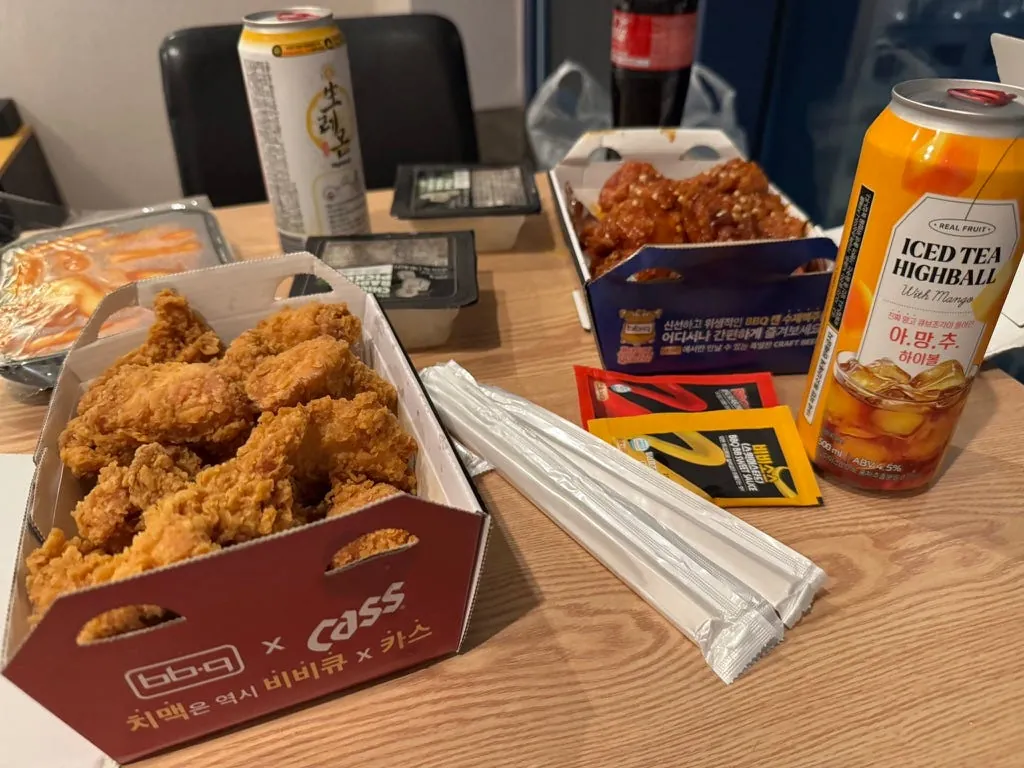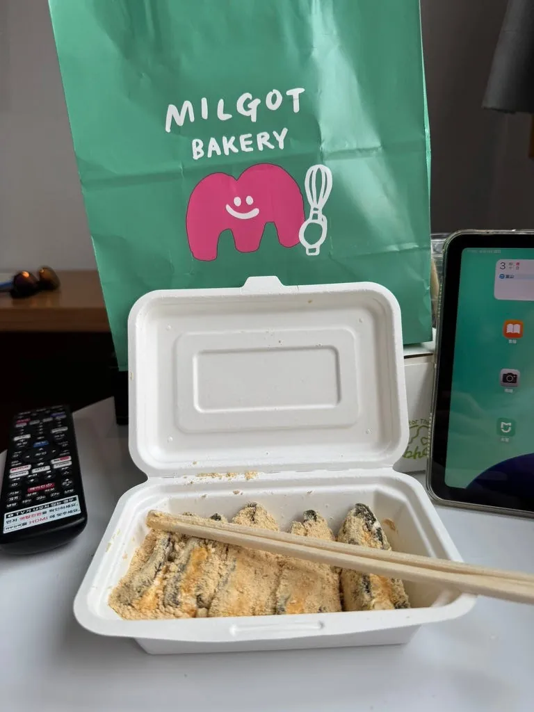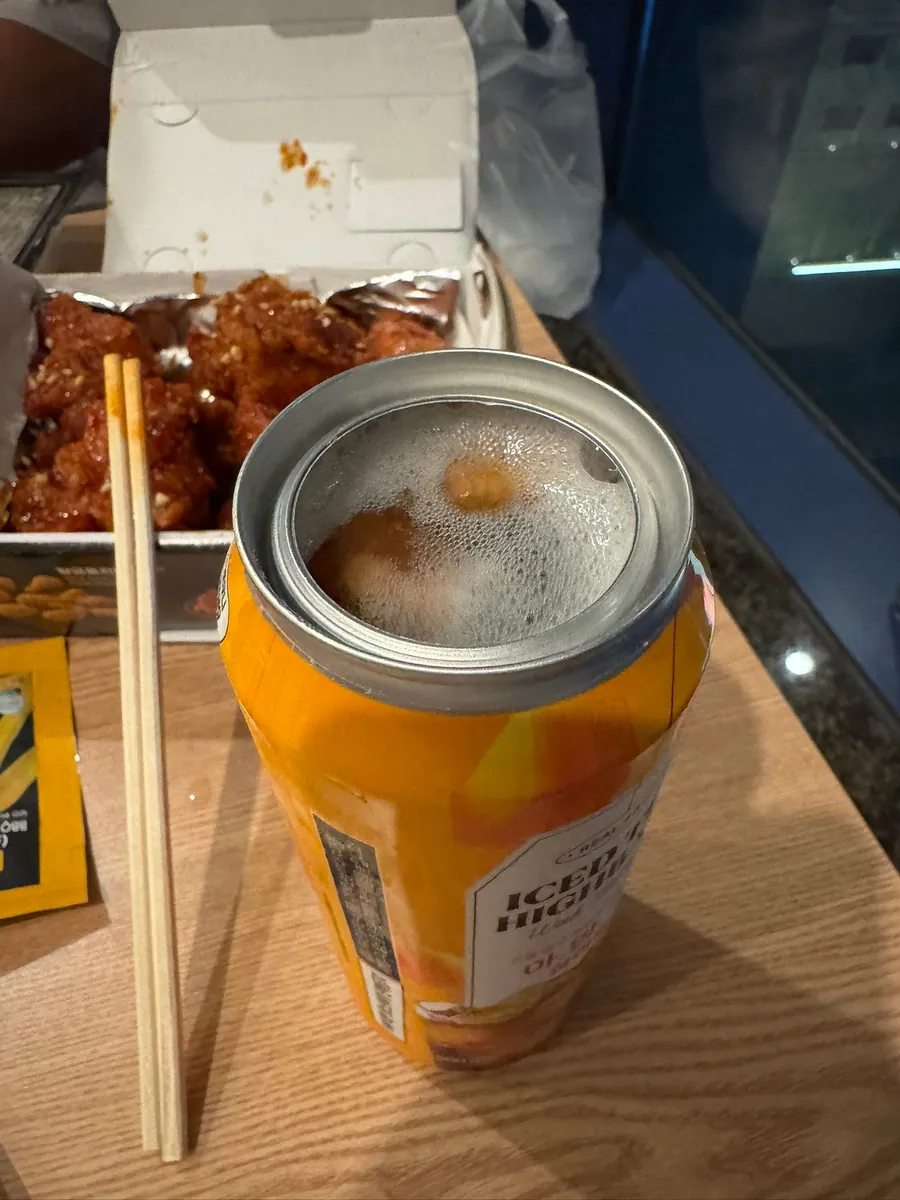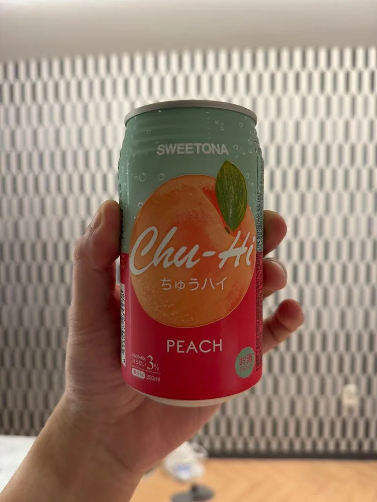 去超商买了水蜜桃酒配刚刚买的章鱼烧,我觉得这个章鱼烧很赞,虽然带回来已经软掉,但是他是黑色墨鱼浆为基底、台湾章鱼烧的脆感配上韩式的辣酱,很好吃。😋