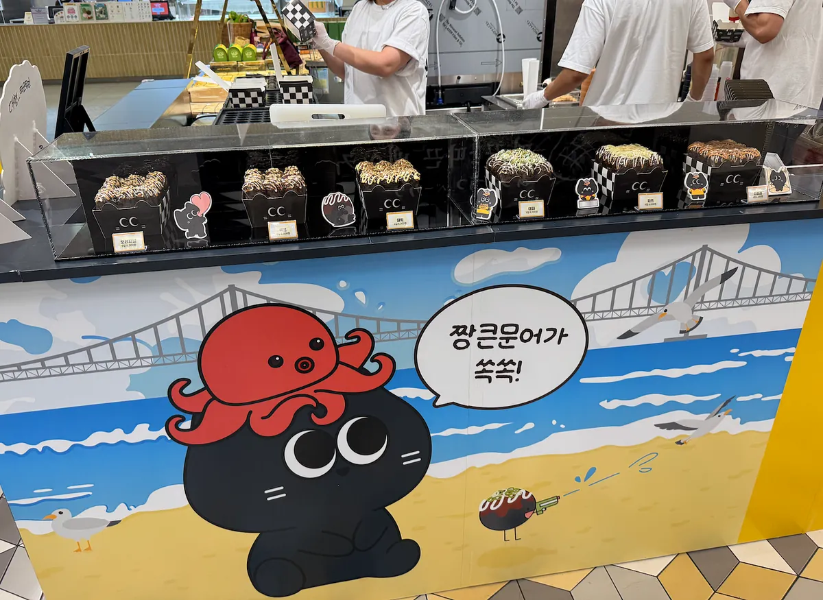 这里也有超市,最后买了这个章鱼烧回饭店吃,选了最右边的韩式口味。