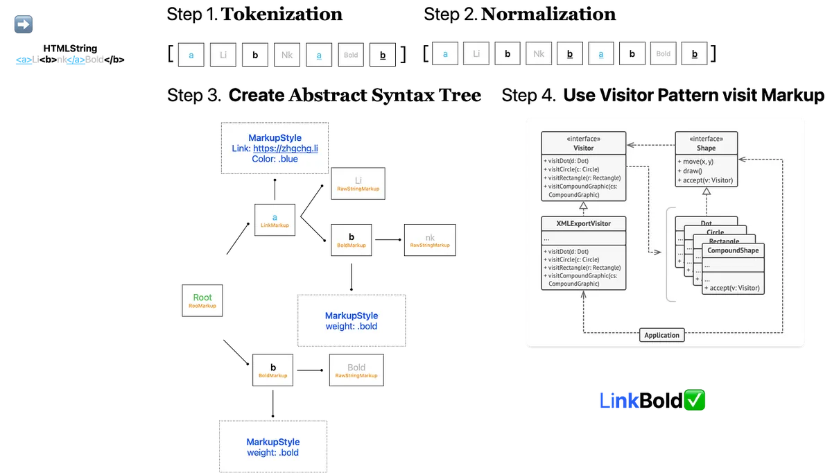 HTML String 的 Tokenization 转换、Normalization 处理、Abstract Syntax Tree 的产生、Visitor Pattern / Builder Pattern 的应用, 还有一些杂谈…