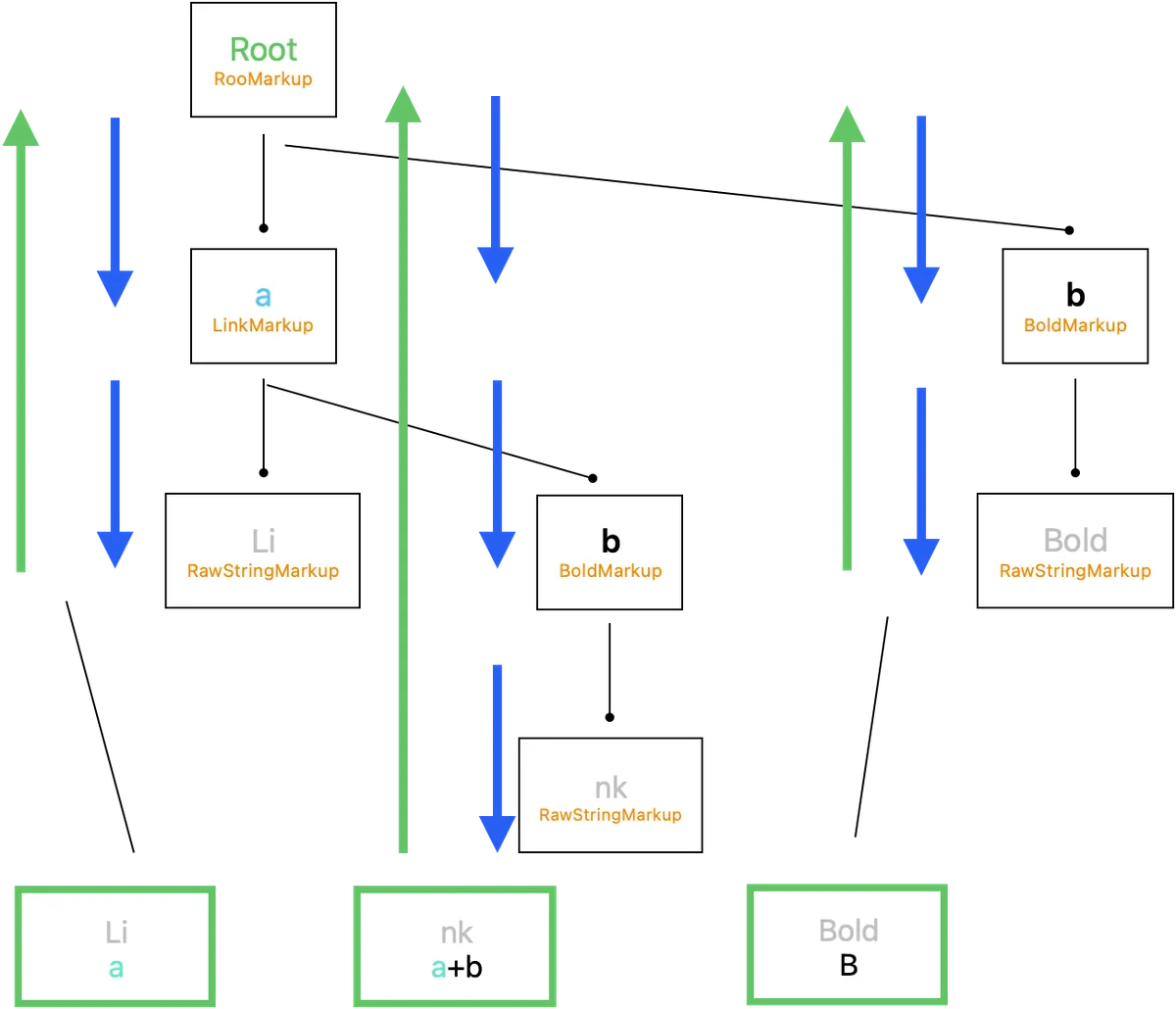 使用纯 Swift 开发,透过 Regex 剖析出 HTML Tag 并经过 Tokenization,分析修正 Tag 正确性(修正没有 end 的 tag & 错位 tag),再转换成 abstract syntax tree,最终使用 Visitor Pattern 将 HTML Tag 与抽象样式对应,得到最终 NSAttributedString 结果;其中不依赖任何 Parser Lib。