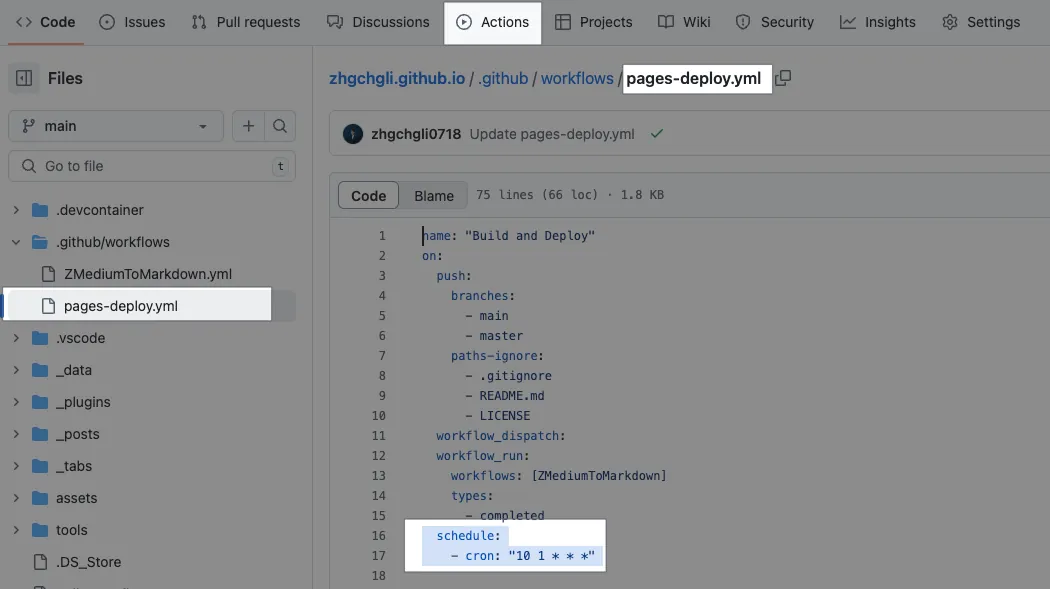 最后在 Github Pages Repo 上的 Actions 加上排程定时自动重新产生网站,就完成了: