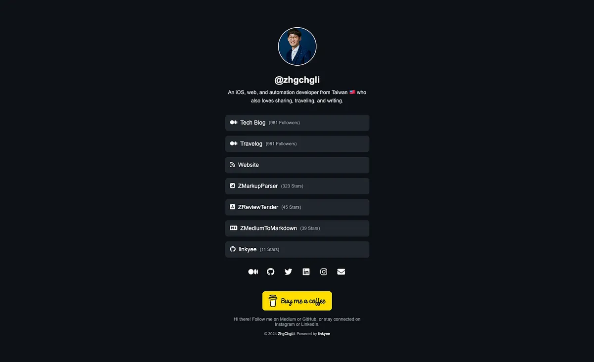 上个月也参考这个专案的方式,做了一个新的开源专案 — Linkyee 开源版的 Link Tree 个人连结页面。