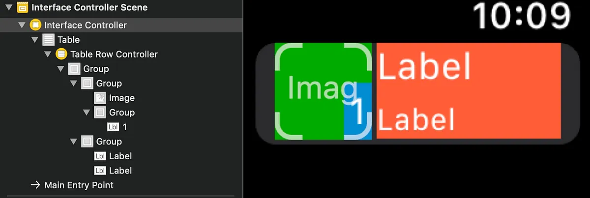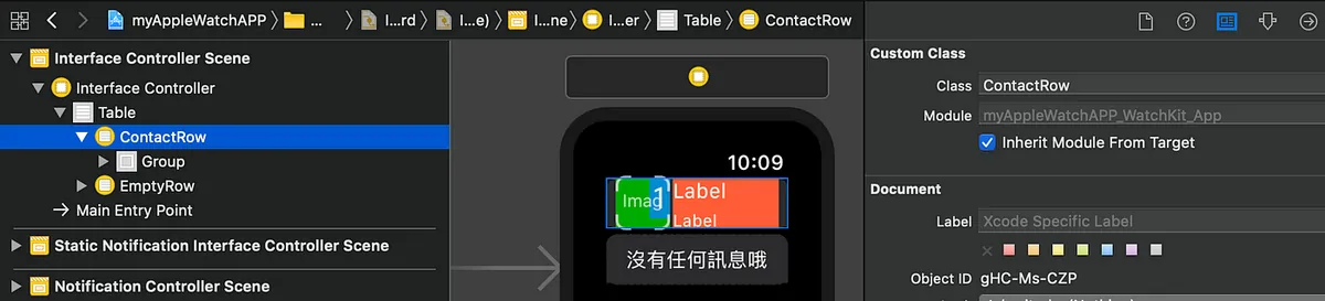 同UIKit UITableView,有Table本体、有Cell(Apple Watch中叫做Row);使用起来简化许多, 你可以直接在此介面上进行Cell的设计排版!