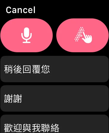 self.presentTextInputController(withSuggestions: ["稍后回复您","谢谢","欢迎与我联络","好的","OK!"], allowedInputMode: WKTextInputMode.plain) { (results) in