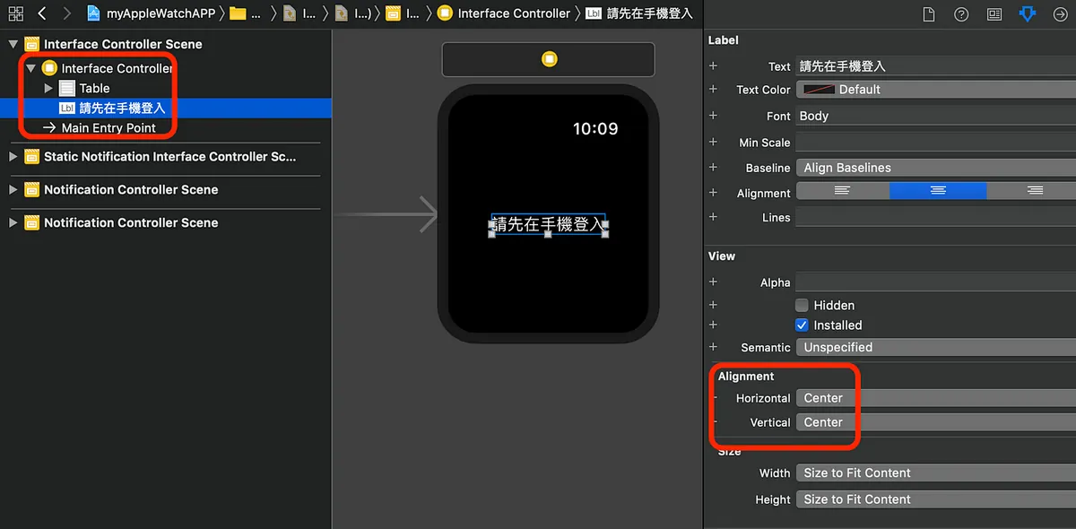 watchKit的hidden不会占位,可拿来做交互应用(有登入才显示Table;没登入显示提示Label)