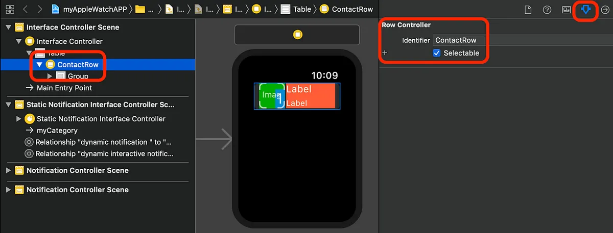 在WatchKit App/Interface.storyboard中找到Interface Controller Scence: