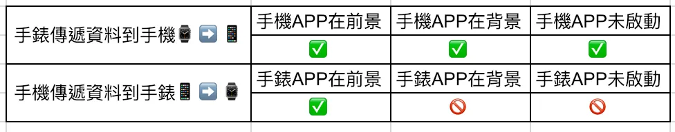 可以看到手表传资料到手机都通,但手机传资料到手表仅限手表APP开启中