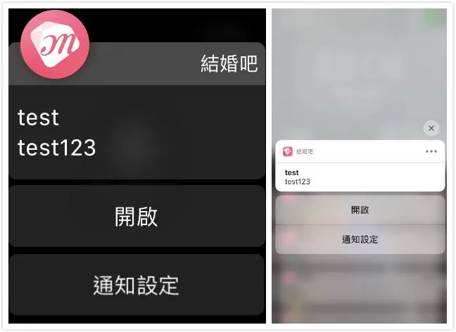 再来讲到interactive,同dynamic,只是能多加Button,能跟dynamic设同个Class控制程式;interactive我没有使用,因为我的按钮是用程式self.notificationActions加上去的,差异如下:
