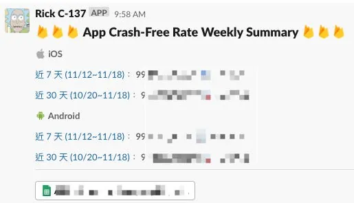 现在开始,纪录追踪 App Crash-Free Users Rate 数据完全自动化;不需要人工手动查询&填入;全部交给机器自动处理!