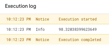 将以上程式码贴到 Google Apps Script 右方程式码区块&上方执行方法选择「execute」function 后可以点击 Debug 测试看看是否能正常取得资料: