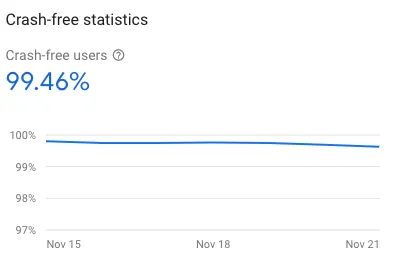 crashFreeUsersRate :不受闪退影响的使用者百分比(小数表示)