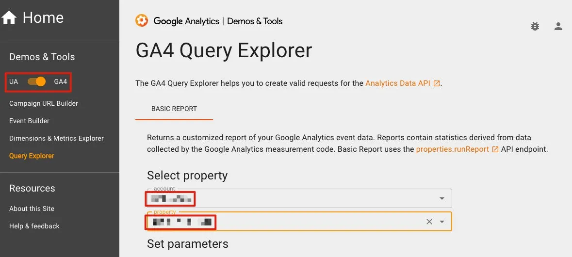 - GA Property ID:一样也可以由刚刚的 GA4 Query Explorer 工具取得: