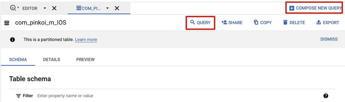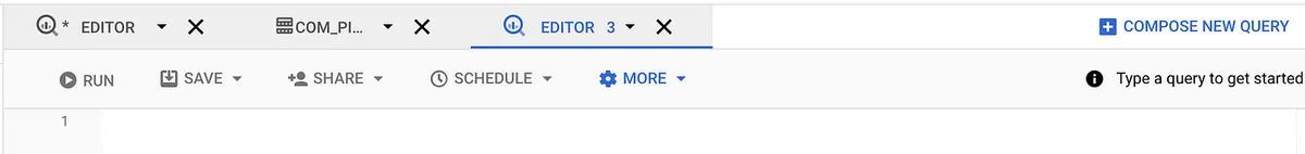 或直接点「COMPOSE NEW QUERY」开一个空白的 Query Editor: