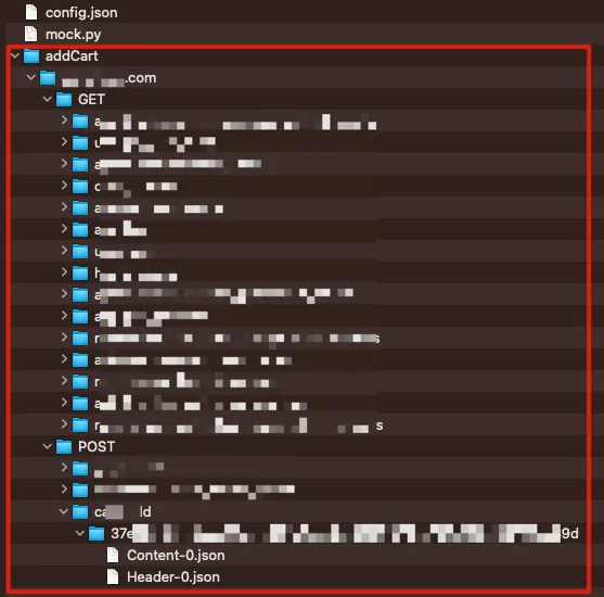 record为True时,会去打目标 Server 取得回应并依照上述逻辑储存下来;False时则只会从本地读资料 (等于 Replay Mode)network_restricted为False时,本地没 Mapping 资料会直接回应404;为True时会去打目标 Server 拿资料。_responseFromMitmproxy用于告知 Response Method 当前回应来自 Local,可以忽略不管、_status_code借用 Header.json 栏位储存 HTTP Response 状态码。