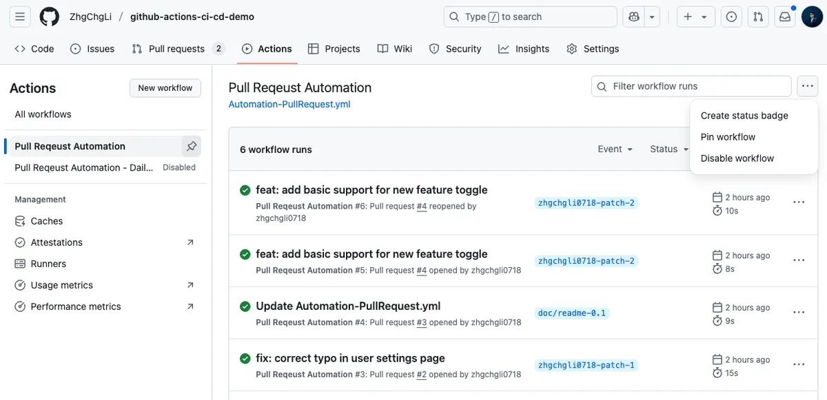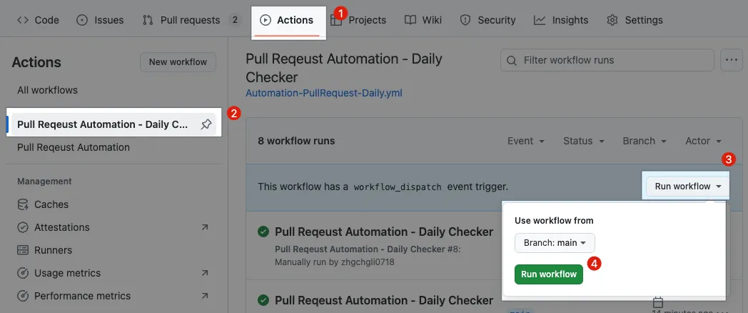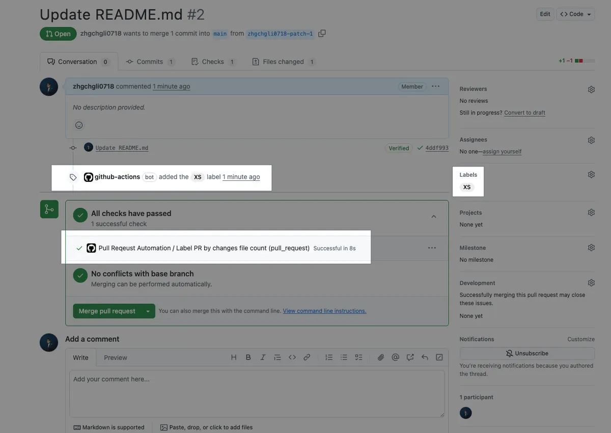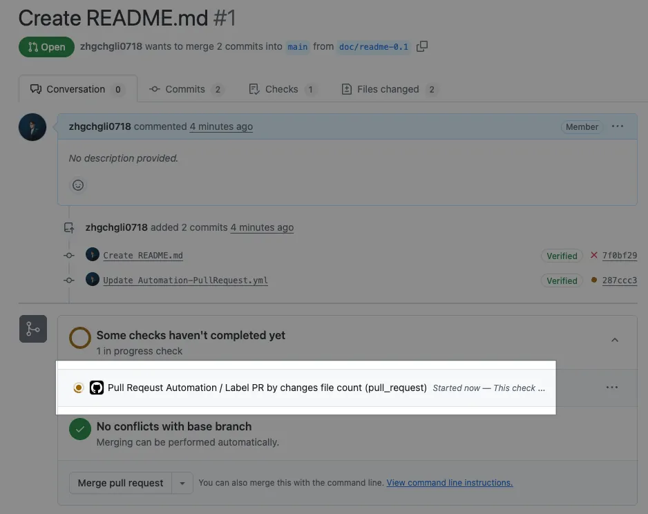 Commit 档案到 Repo 主分支之后,重新开 PR 触发验证一下 Actions。