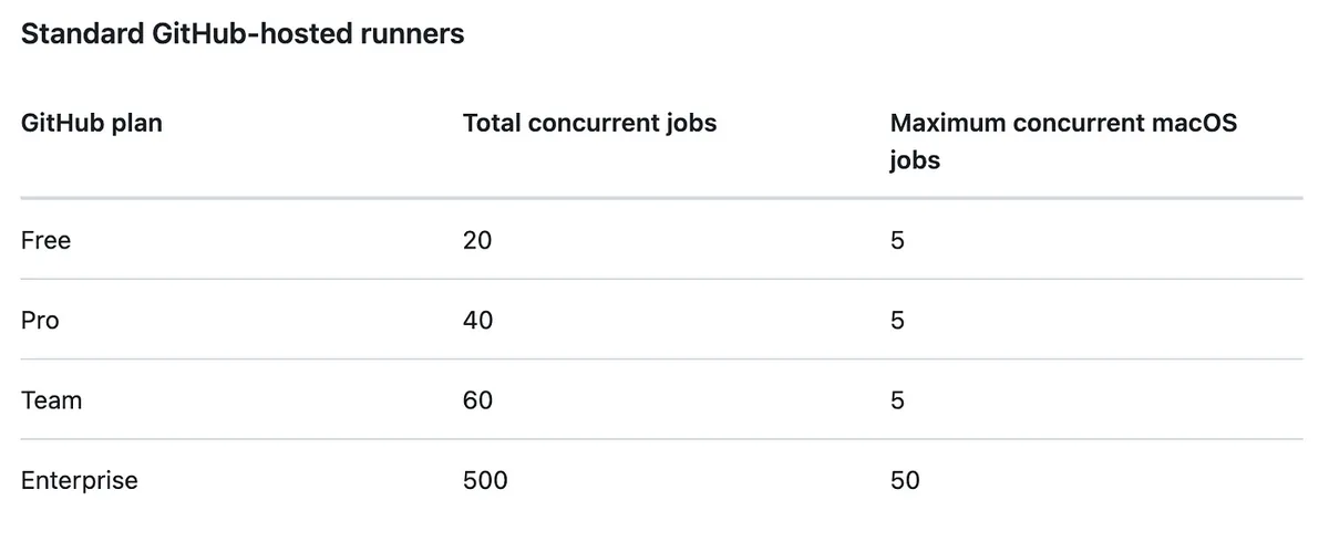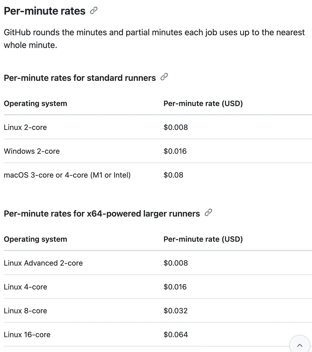 ⚠️️Private Repo 计费方式: 超过免费额度之后开始用用量计费(可设上限跟通知),依照 Runner 所属的机器作业系统、核心不同,价格也不同: