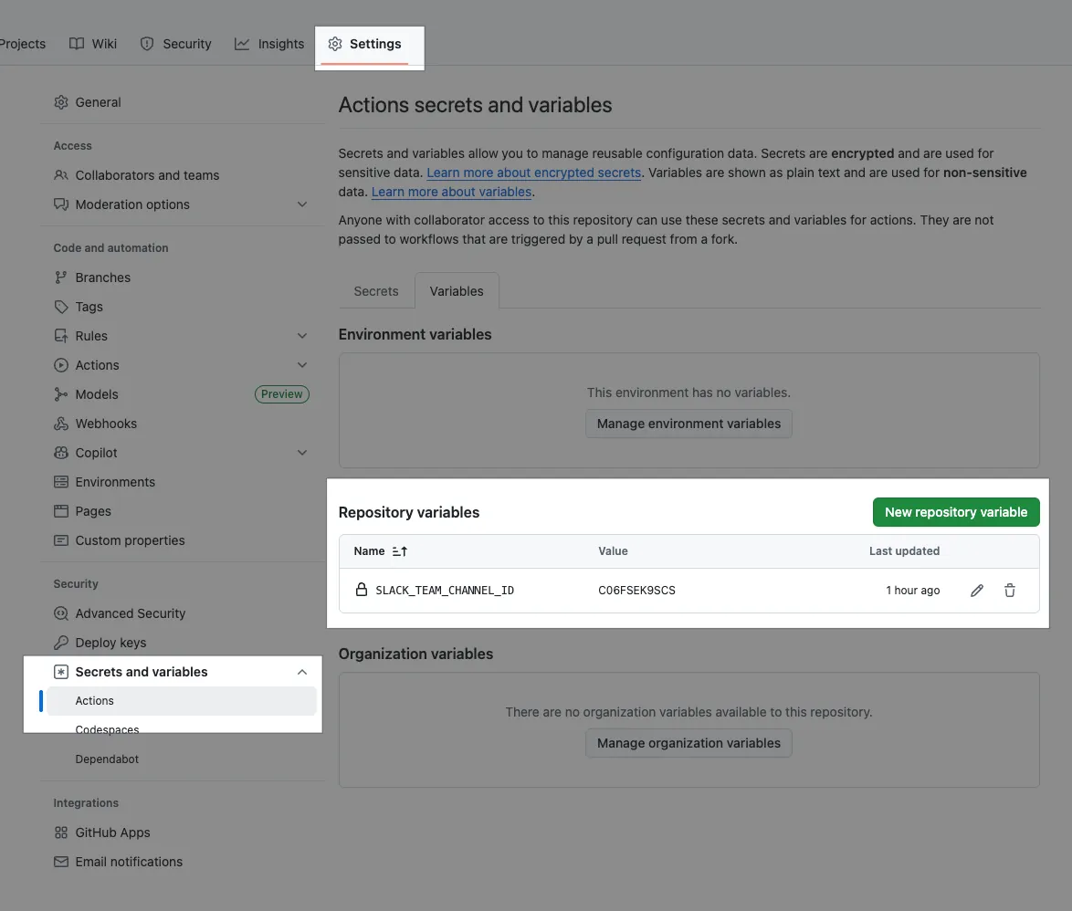 Repo → Settings → Secrets and variables → Actions → Variables。