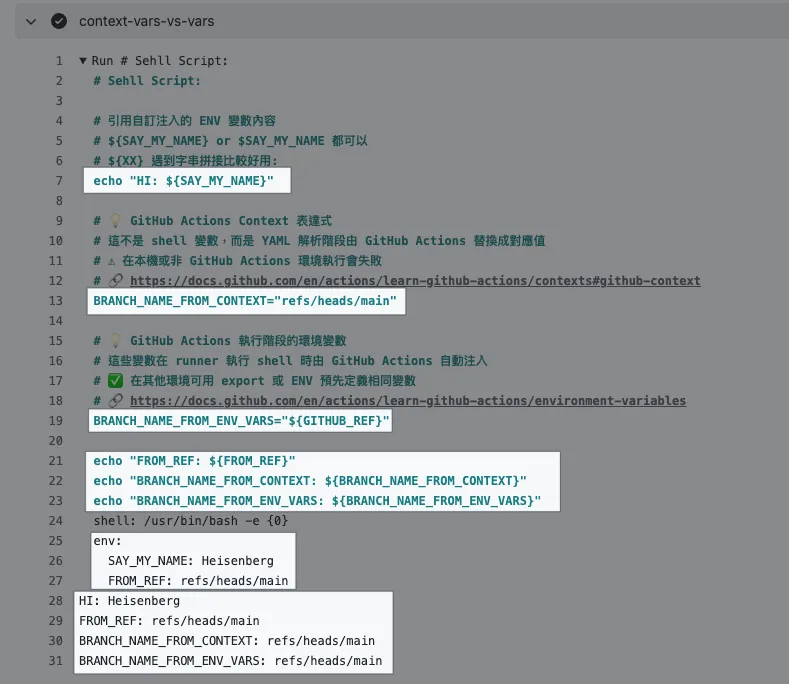 Step 可以直接撰写 shell script 程式 可以引用 gh cli 、当前环境变数(例如取得 PR 编号),直接做想做的事