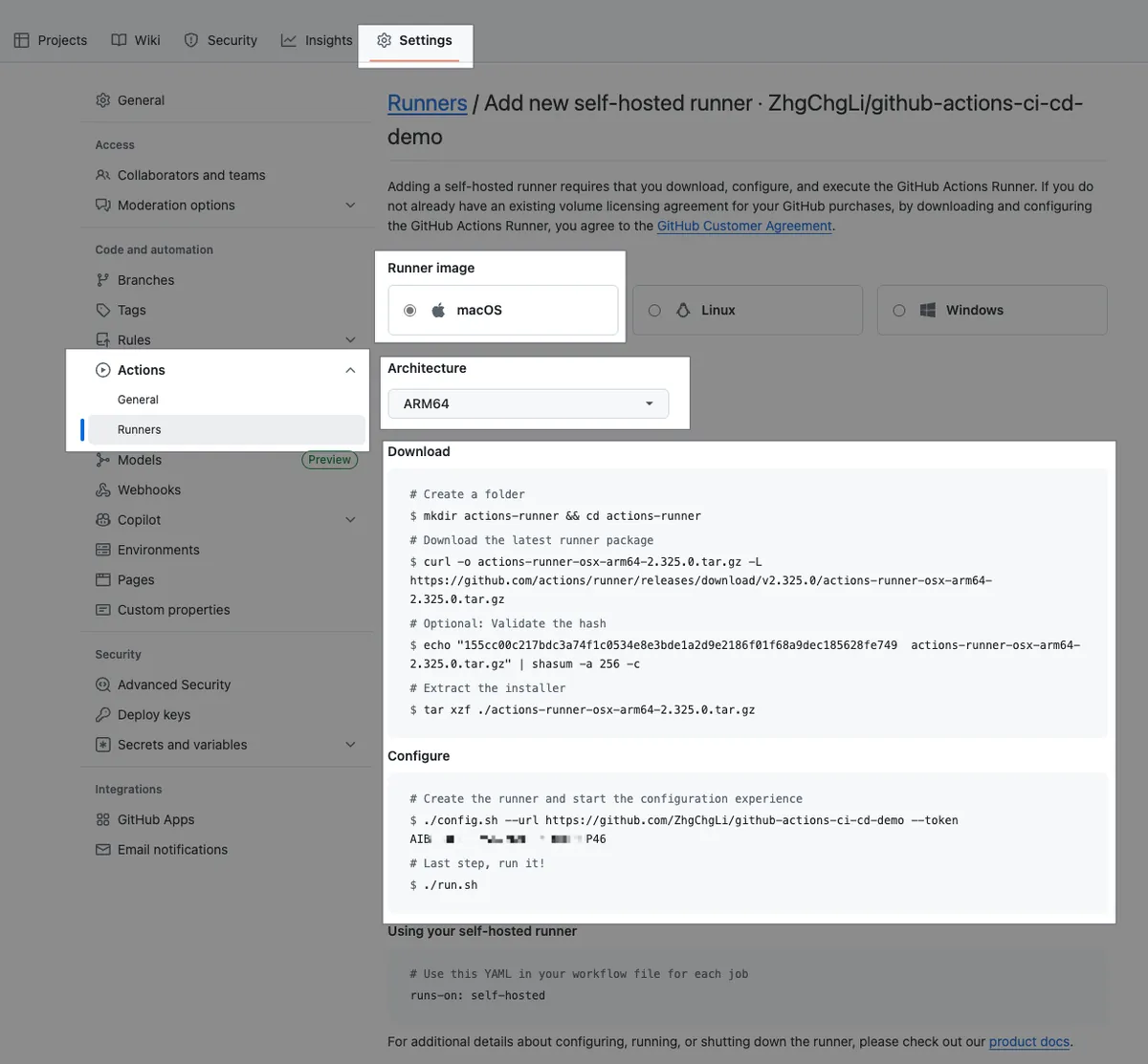tar xzf ./actions-runner-osx-x64-2.325.0.tar.gz
