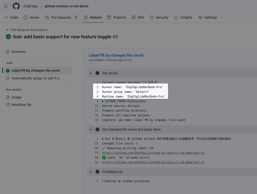 这里是 AND 不是 OR,GitHub Runner 暂不支援 OR 挑选 Runner 执行。