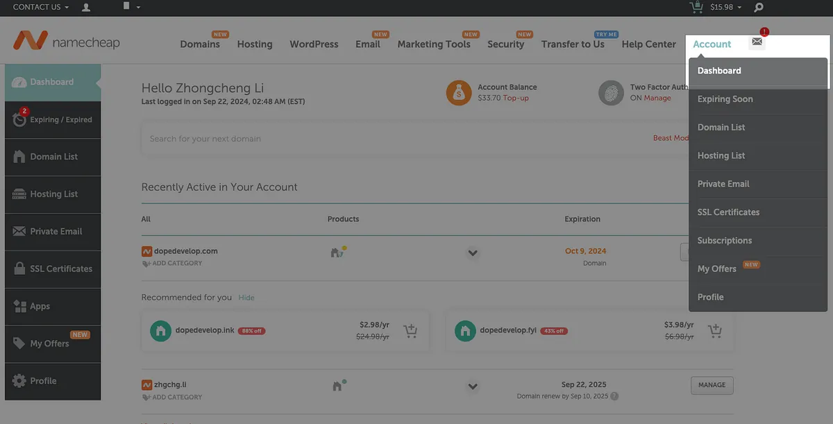1. 购买&取得域名 by Namecheap (老牌网域大厂)