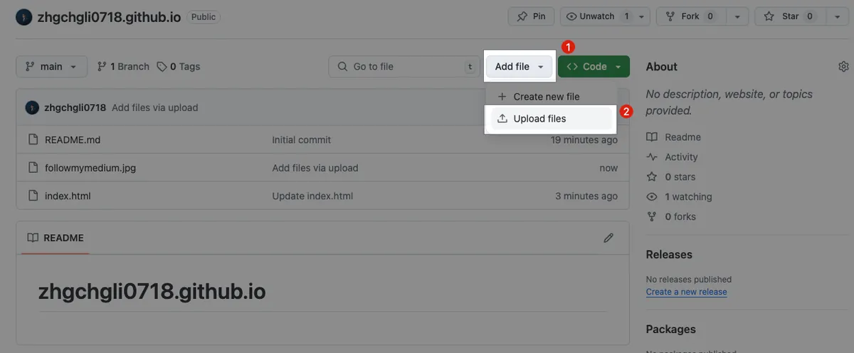 - 一样点击「Add file」选择「Upload files」