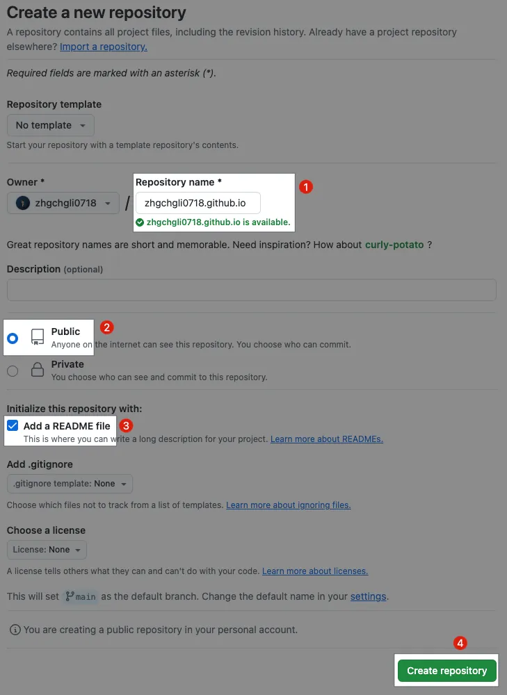 输入你的帐号.github.ioPublic:公开的专案