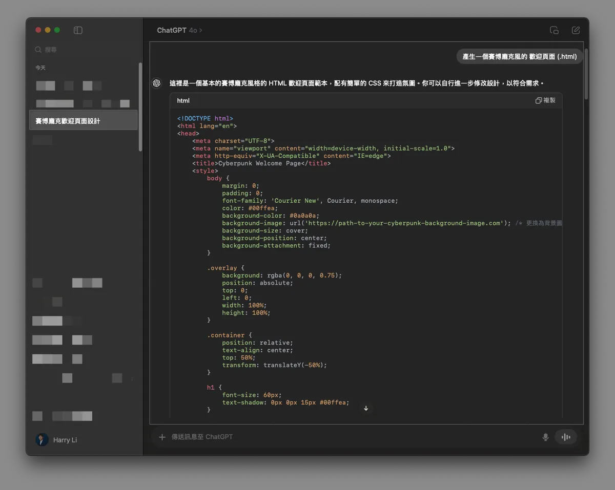 4. 使用 ChatGPT 协助您产生页面 .html 档案