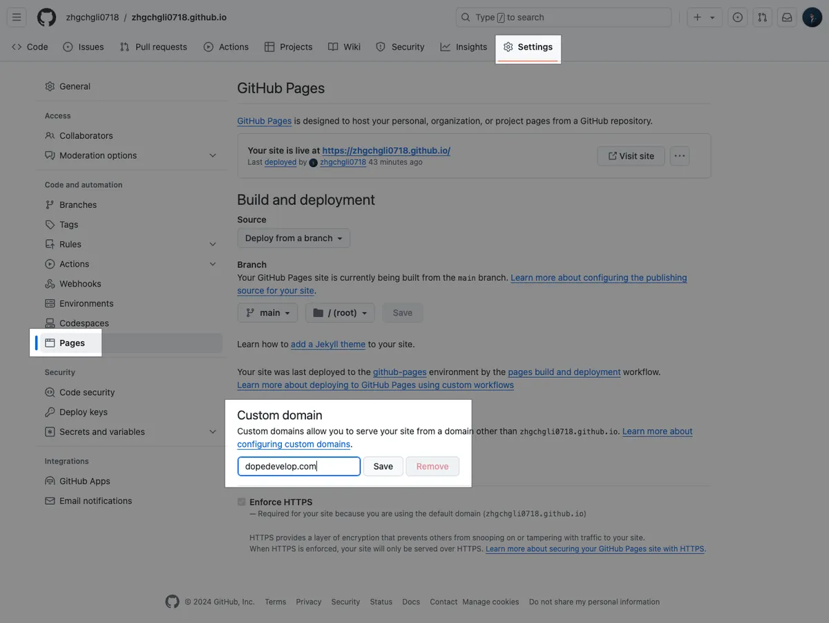 成功!🎉🎉🎉 现在我们不用在使用旧的 https://你的帐号.github.io 访问你的 Github Pages,可以直接使用 https://你的网域 进行访问啰!