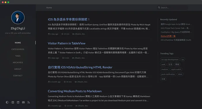 1. https://zhgchg.li -> 用在 Github Pages Jekyll Blog