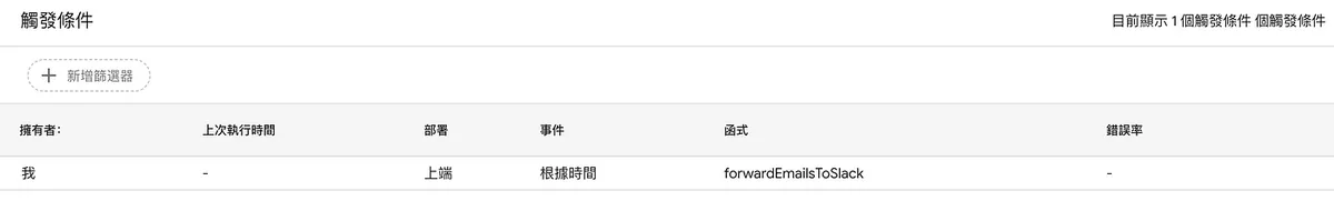 建立后,可点击专案名称重新命名 EX: ForwardEmailsToSlack