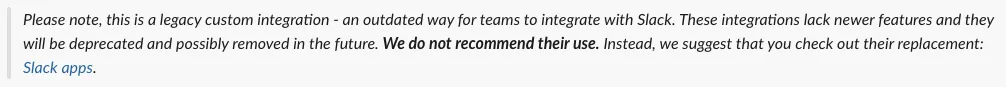 请注意官方建议使用新的 Slack APP Bot API 的 chat.postMessage 来传送讯息,Incoming Webhook 简便的这个方式之后会弃用,这边偷懒没有使用,可搭配下一章「汇入员工名单」会需要 Slack App API 一起调整成新方法。