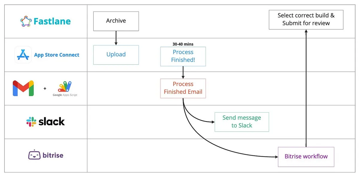 最近在优化 iOS App CI/CD 的流程,使用 Fastlane 作为自动化工具;打包上传后如果要继续完成自动送审步骤 ( skip_submission=false ),就需要等苹果完成 Process 大概需要浪费 30~40 mins 的 CI Server 时间,因为苹果 App Store Connect API 并不完善,Fastlane 也只能每分钟去检查一次上传的 Build 是否处理完成,非常浪费资源。