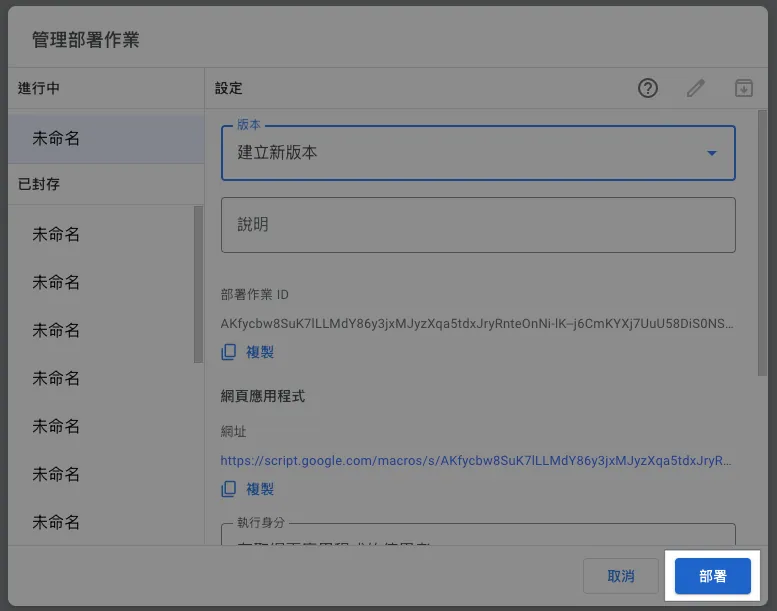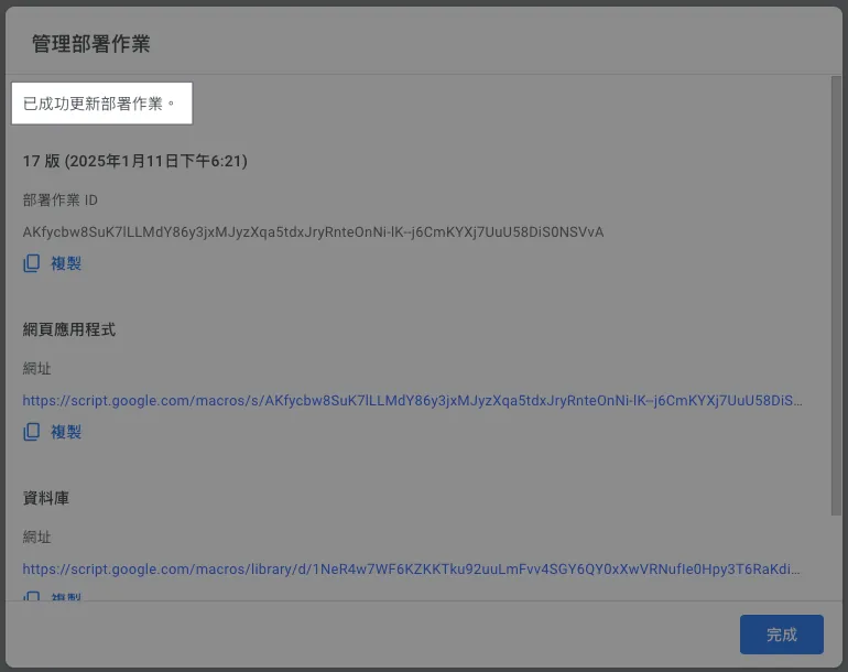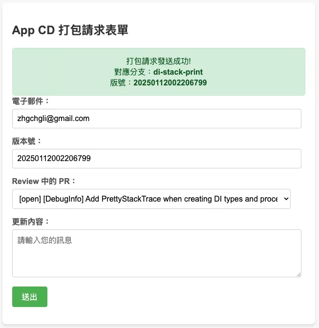 此功能已整合到实际打包工具使用,可参考最新文章案例:「 CI/CD 实战指南(四):使用 Google Apps Script Web App 串接 GitHub Actions 建置免费易用的打包工具平台 」
