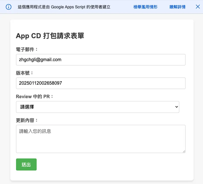 使用 Google Apps Script Web App 表单串接 Github Action CI/CD 工作