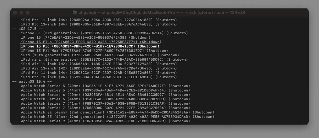 首先我们要取得你想要执行的模拟器的 Device UUID