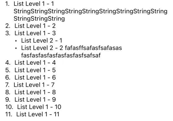 ListItem(type: .circle, text: "List Level 2 - 2 fafasffsafasfsafasas\tfasfasfasfasfasfasfasfsafsaf", subItems: [])