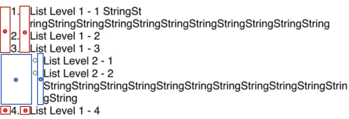 attributedString.append(NSAttributedString(string: "\t\(textListLevel2.marker(forItemNumber: 2))\tList Level 2 - 2 StringStringStringStringStringStringStringStringStringStringStringString\n", attributes: [.paragraphStyle: listLevel2ParagraphStyle]))