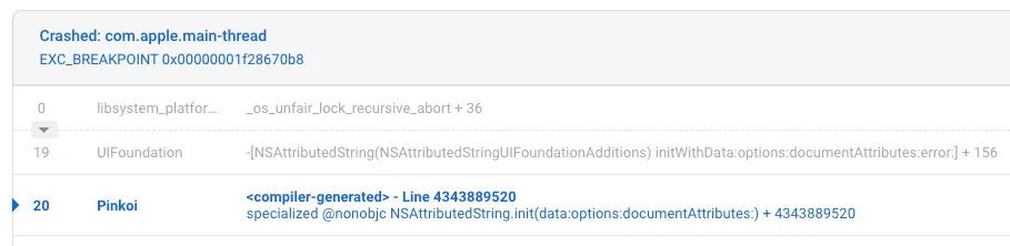 NSAttributedString 在 init 时发生 Crashed: com.apple.main-thread EXC_BREAKPOINT 0x00000001de9d4e44 闪退问题。