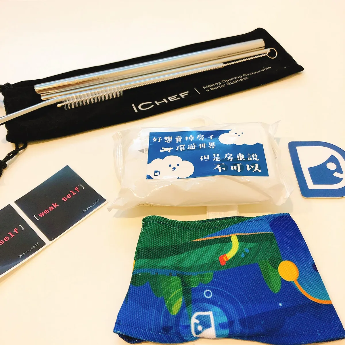 赞助商摊位、 Ask the Speaker 区 因场地大交流更方便、更多活动;从 iChef 摊位 #iCHEFxiPlayground 获得了一组环保吸管及铜锣烧、 Dcard 摊位去年已拿过,今年又拿到一组贴纸+环保杯套,今年多一个厌世语录湿纸巾、 17 直播 填问券抽 Airpods 2 、在 [ weak self ] Podcast 摊位拿了贴纸,另外还有 Grindr 、 CakeResume 、 Bitrise 的摊位可以互动,附上一张 不齐全 的战利品照。
