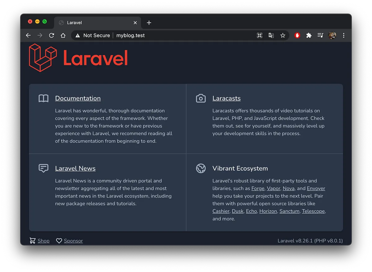 在浏览器输入 http://myblog.test 测试是否正确建立&运行: