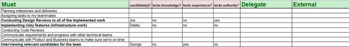 作者建议可以从 15–20% 比例开始调配,本来是 100% as Maker,现在可能是 20% as Maker / 80% as Manager(但这要看实际团队大小及成员能力,作者也说 50% / 50% 也有可能),就是不能在是 100% 投入工程开发,要多花心力在管理上。