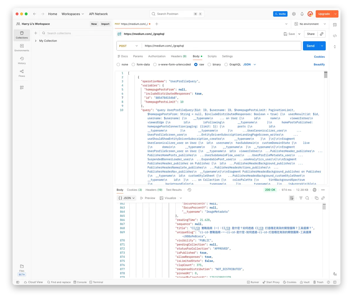 Medium API 爬取资料与突破 Cloudflare 防护|完整 GraphQL 操作教学