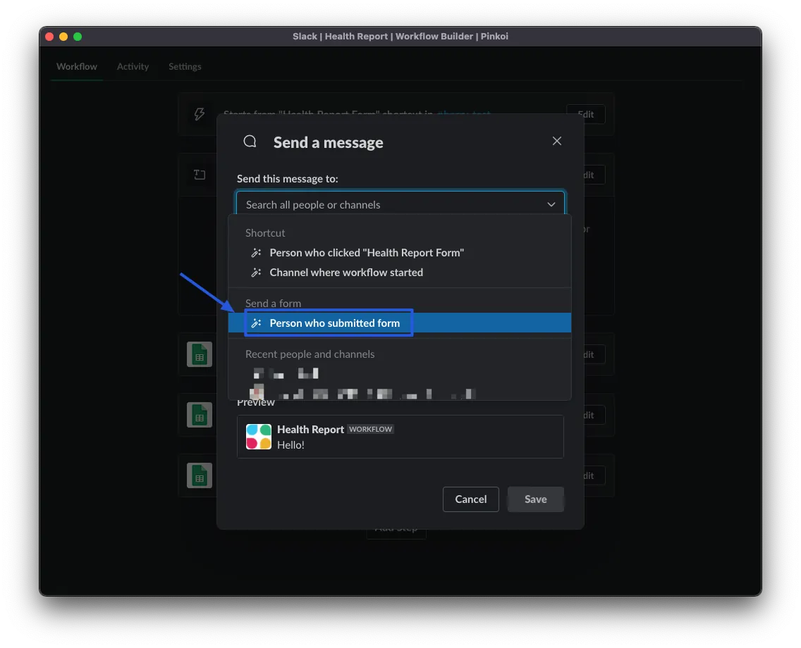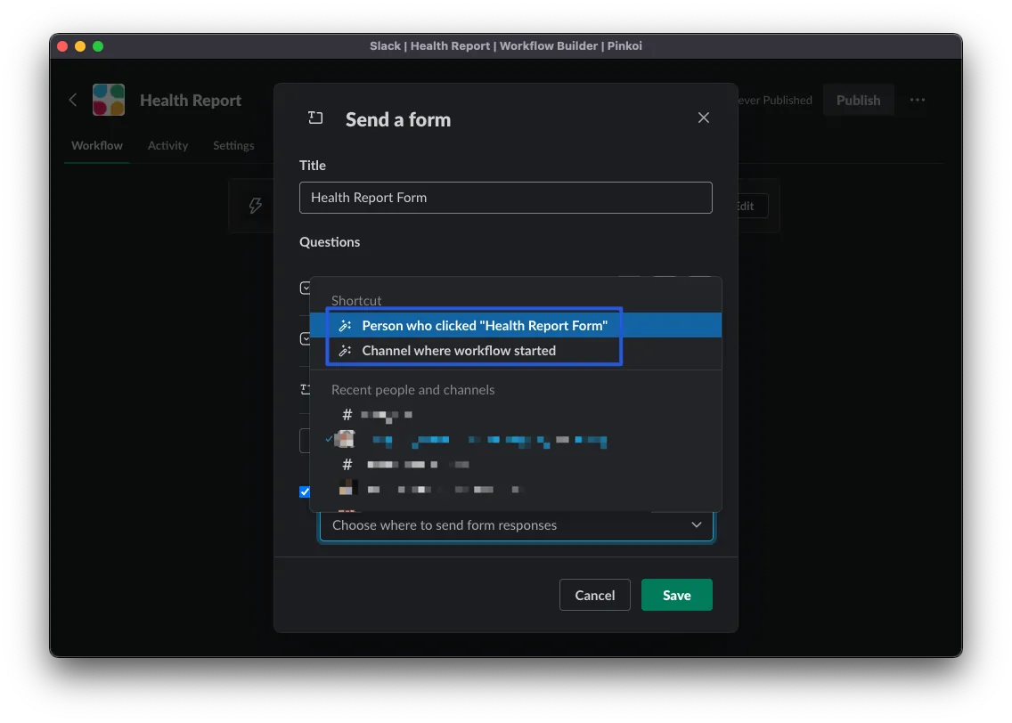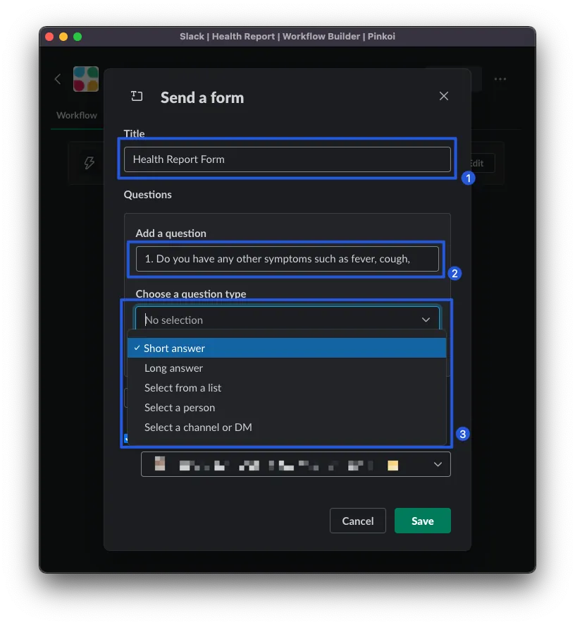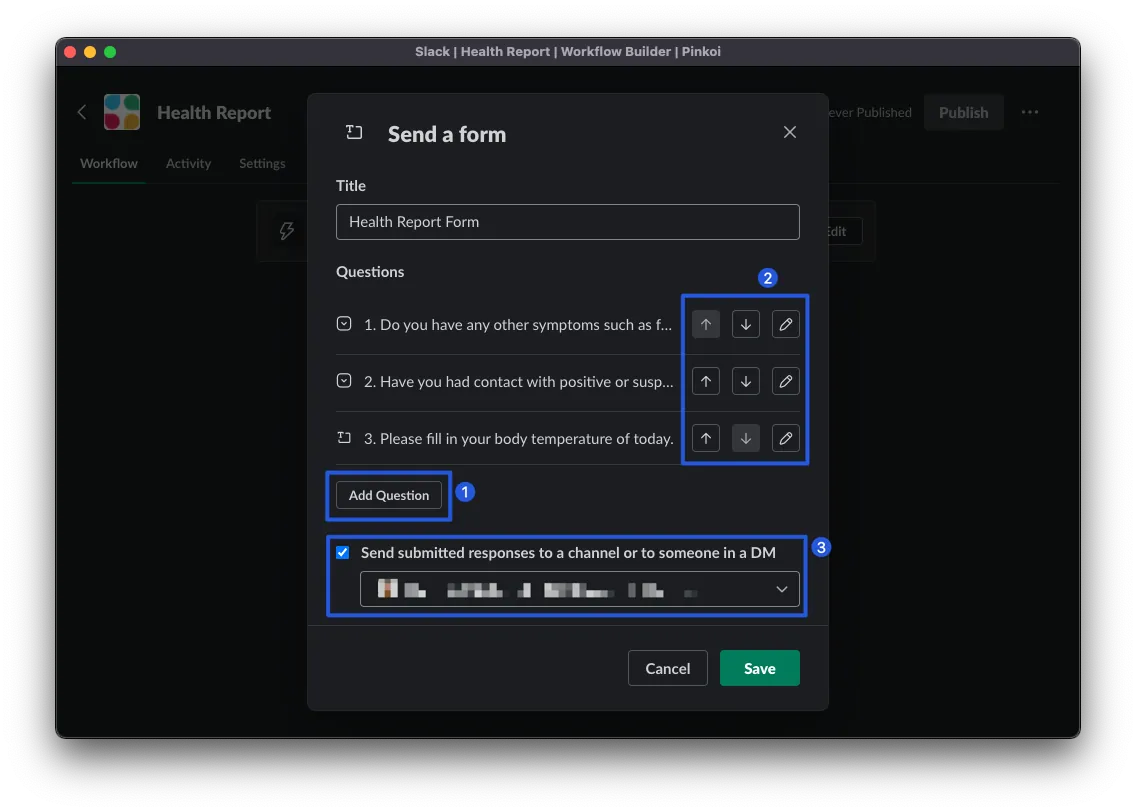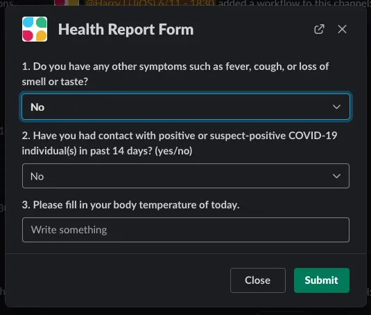 从 Google Form 或 Slack Workflow Form 填写健康问题