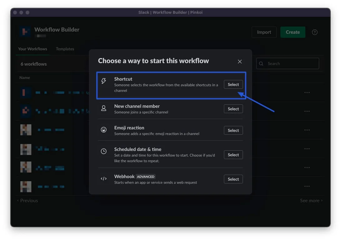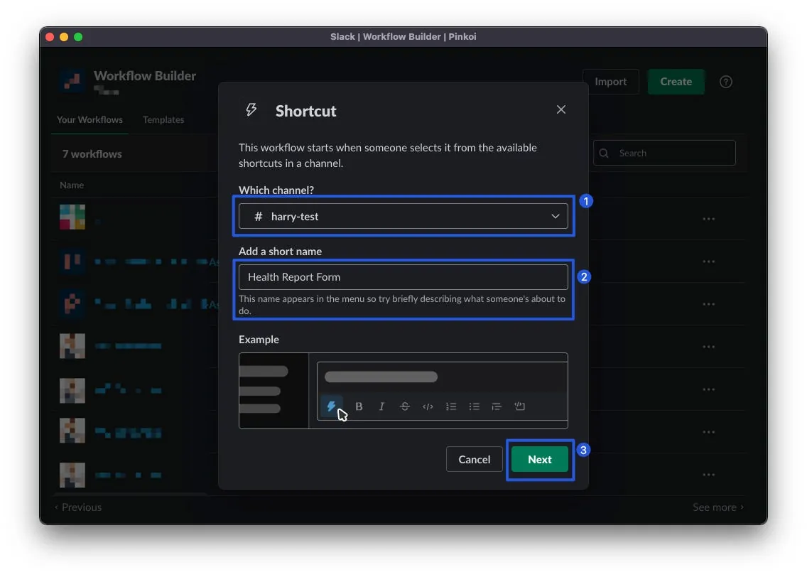 *一个 workflow shortcut 仅能加入在一个 channel 中